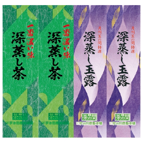 内容 | ●〈一番濃い味深蒸し茶〉100g袋2本(3456円) ●〈深蒸し玉露〉80g袋2本(3672円) |