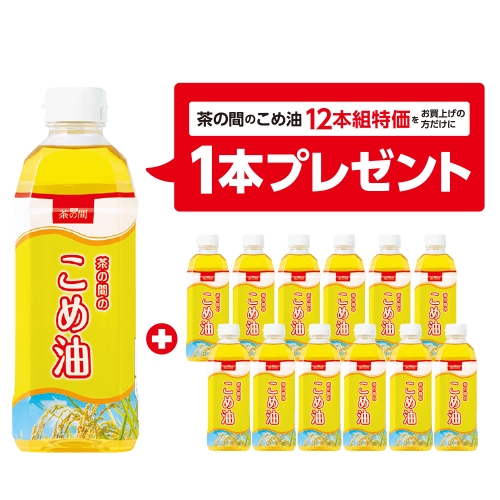 ビタミンEをはじめ、美容や健康をサポートする健康成分が豊富で、からだにうれしい油として大好評の〈茶の間のこめ油〉。ご愛顧に感謝を込めて、〈茶の間のこめ油12本組〉をお買上げの方に今だけ特別に1本プレゼントいたします。