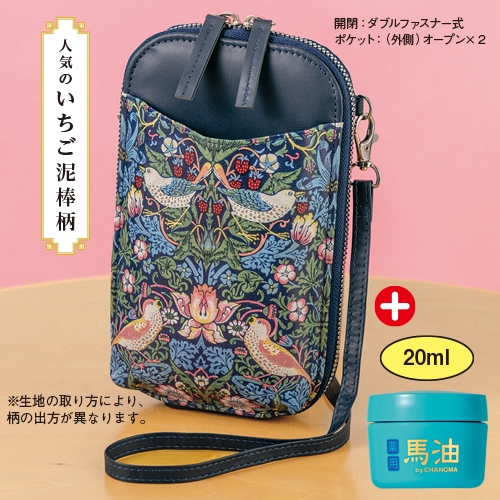 | 内容 | ●薬用馬油20ml1個 ●ポシェット1個(袋部分:約タテ20×ヨコ12×マチ4cm/肩ひも最長約140cm/約120g/合成皮革・ポリエステル) |