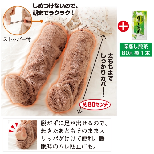 | 内容 | ●深蒸し煎茶80g袋1本 ●足のお布団1組(適応サイズ:太もも周り約55cmまで/ポリエステル) |