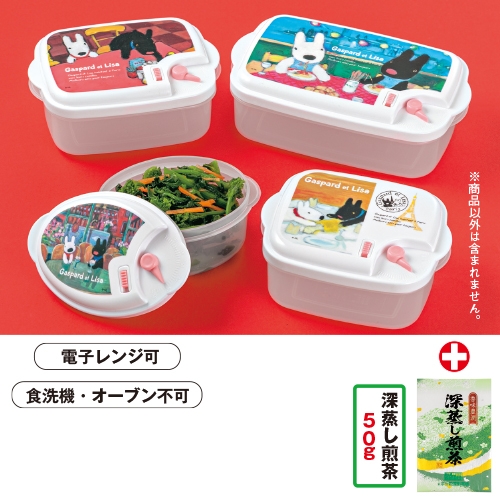 | 内容 | ●深蒸し煎茶50g袋1本 ●容器4種各1個(大:約18.8×11.2×6.1cm・中:約14.9×10.4×6.2cm・小:約13.3×10.5×6.1cm・楕円:約12.5×8.8×6.2cm/ポリプロピレン) |