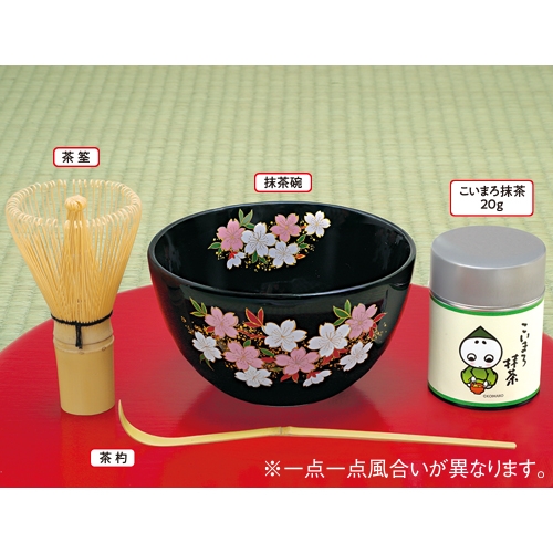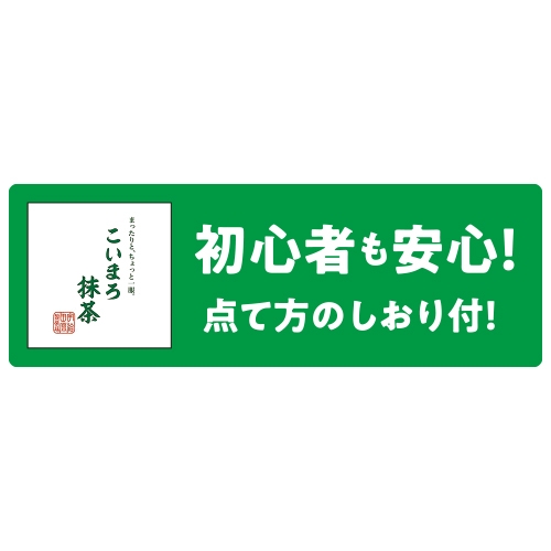 | 内容 | ●抹茶<こいまろ抹茶>20g缶1本 ●抹茶碗1客(約300cc/美濃焼) ●茶筌(約50本立て・茶杓各1本) |