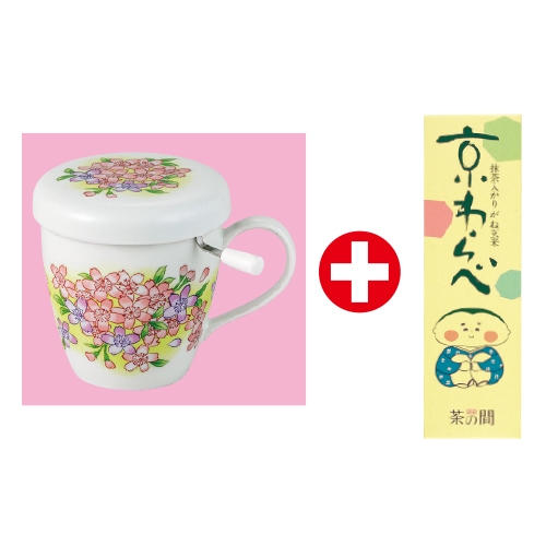 | 内容 | ●抹茶入かりがね玄米茶<京わらべ>200g箱1本 ●蓋付マグカップ1客(約180cc/美濃焼/茶こし付) |