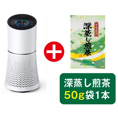 | 内容 | ●深蒸し煎茶50g袋1本 ●空気清浄機1個(約径20.5〈底面〉×高さ41.5cm/約1.68kg/本体:ABS樹脂) |