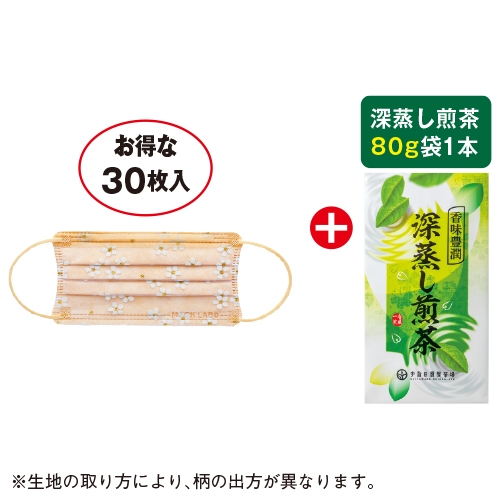 | 内容 | ●深蒸し煎茶80g袋1本 ●マスク30枚(約8.5×17.5cm/本体:フィルター部=ポリプロピレン/表生地=ポリエステル) |