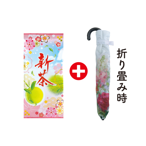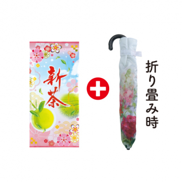| 内容 | ●深蒸し新茶70g袋1本 ●傘1本(折畳時約37cm/親骨約50cm/約230g/ポリエステル) |