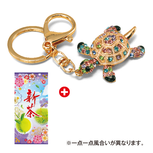 深蒸し新茶と虹色亀キーホルダー