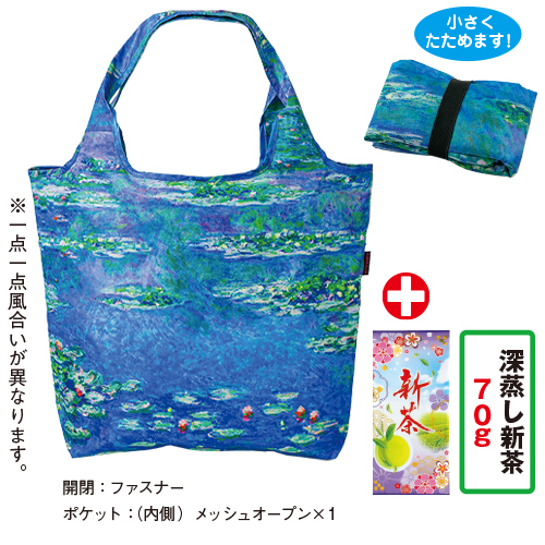 | 内容 | ●深蒸し新茶70g袋1本 ●バッグ1個(袋部分:約タテ35×ヨコ45×マチ12.5cm/ポリエステル) |