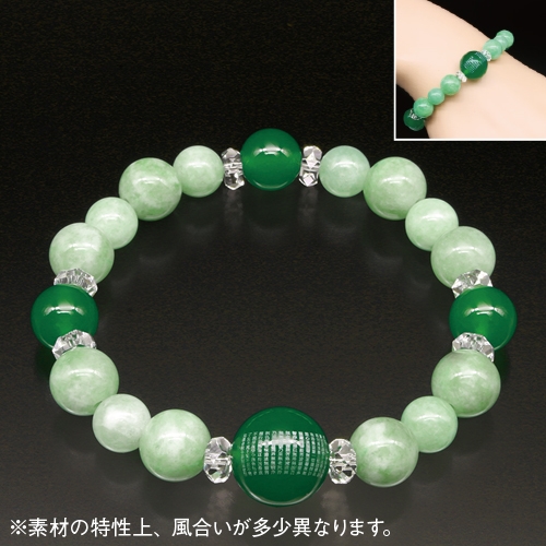 | 内容 | ●内円周約17cm ●水晶・グリーンカルセドニー・グリーンクォーツァイト |