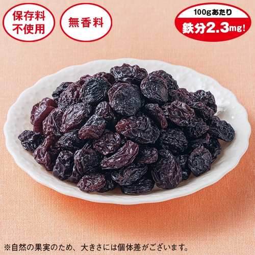 大粒のぶどう「フレーム種」を天日干しして、旨みや栄養を凝縮。鉄分が豊富なプルーンの約2倍の鉄分が含まれています。さらにポリフェノールや食物繊維など、美容を支える成分もたっぷりです。