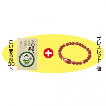 | 内容 | ●こいまろ茶30g袋1本 ●ブレスレット1個(内円周約16.5cm/赤メノウ・ガラス・ブラス・ゴム) |