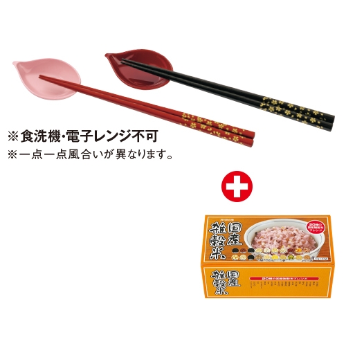 | 内容 | ●雑穀ごはんの素30袋(1袋17gが2~3合分/賞味期間545日) ●箸2色各1膳(長さ約23cm/木) ●小皿2枚各1枚(約5.3×7.5×高さ1.5cm/アクリル系樹脂) |