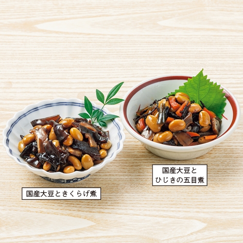 | 内容 | ●国産大豆とひじきの五目煮120g ●国産大豆ときくらげ煮120g |