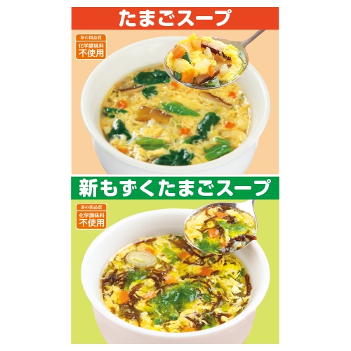 | 内容 | ●ブロックタイプたまごスープ14個(1個8.1g) ●ブロックタイプもずくたまごスープ14個(1個7.7g) |