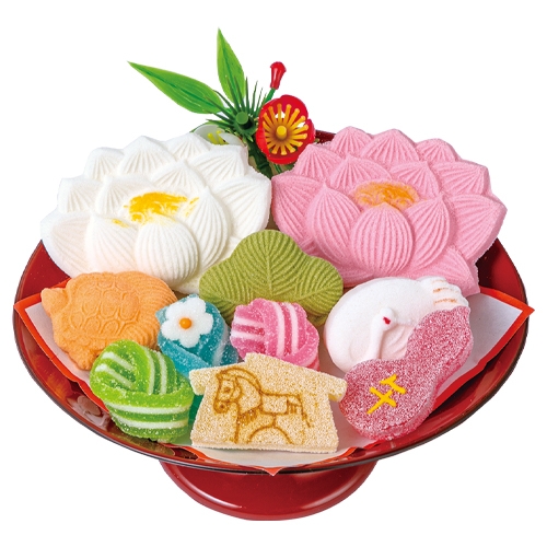 | 内容 | ●大落雁2個 ●落雁3個 ●半生菓子5個 |