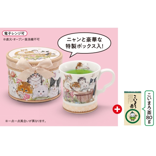 | 内容 | ●こいまろ茶80g箱1本 ●マグカップ1客(約240cc/磁器)/箱1個(約径13×高さ10cm) |