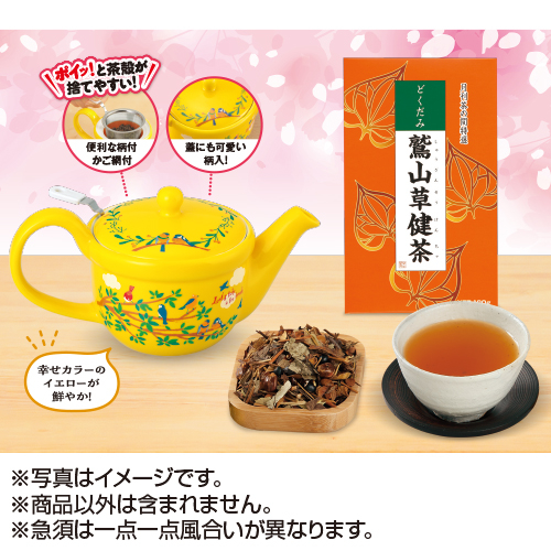 | 内容 | ●ブレンド健康茶〈鷲山草健茶〉100g箱1本 ●急須1個(約250cc/柄付かご網/陶器) |
