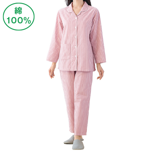 トップ > 綿ストライプパジャマ・ピンクM