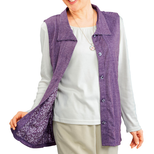 トップ > 今月の新発売 > 涼やか羽織りベスト(紫)M