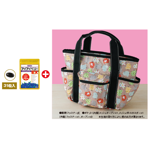 | 内容 | ●アイアイベリーEX31粒 ●バッグ1個(袋部分:約タテ24×ヨコ<上部>37・<下部>25×マチ13cm/ポリエステル・アルミシート) |