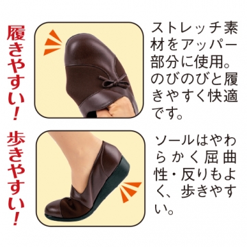 落ち着いたデザインと、伸びる素材を使用した快適な履き心地を兼ね備えた靴です。