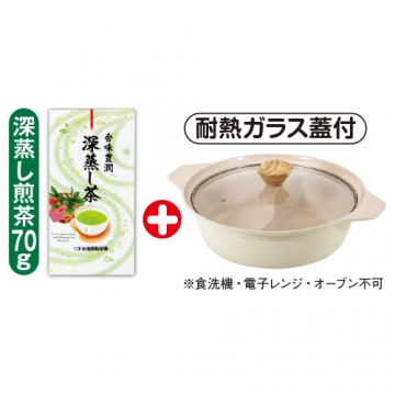 | 内容 | ●深蒸し煎茶70g袋1本 ●鍋1個(約30×37×高さ13cm〈取っ手・蓋含む〉/本体:アルミニウム合金) |