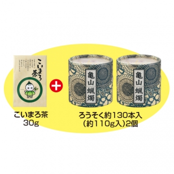 | 内容 | ●こいまろ茶30g袋1本 ●ろうそく約220g(約110g×2個/長さ各約2.6cm) |