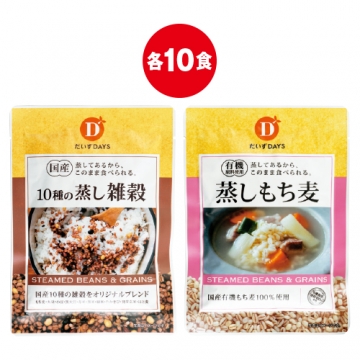 内容 | ●10種の蒸し雑穀10袋(1袋70g) ●蒸しもち麦10袋(1袋70g) |